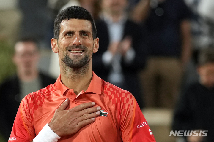 [파리=AP/뉴시스] 노바크 조코비치(3위·세르비아)가 지난달 31일(현지시각) 프랑스 파리의 스타드 롤랑가로스에서 열린 프랑스오픈 테니스 남자 단식 2회전에서 마르톤 푸초비치(83위·헝가리)를 물리친 후 기뻐하고 있다. 조코비치는 푸초비치를 3-0(7-6<7-2> 6-0 6-3)으로 꺾고 3회전에 올랐다. 2023.06.01.