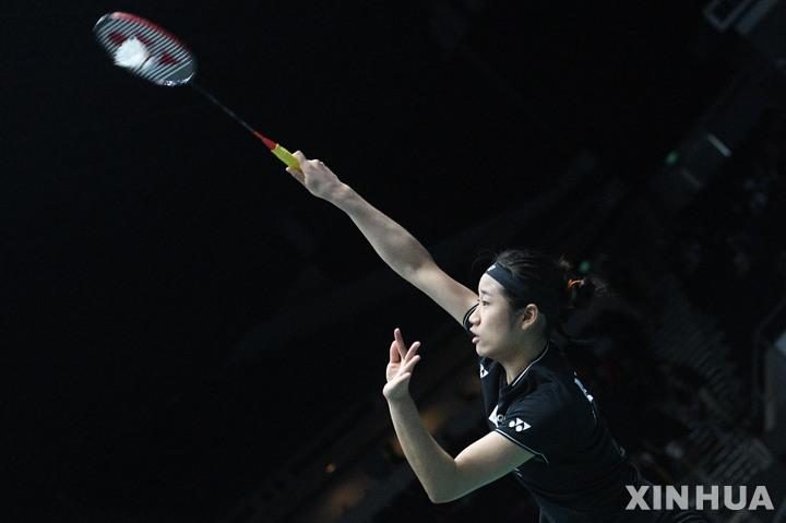 [싱가포르=신화/뉴시스] 안세영(2위)이 9일(현지시각) 싱가포르 체육관에서 열린 2023 싱가포르 오픈 배드민턴선수권대회(월드투어 슈퍼750) 여자단식 8강전에서 왕지이(7위·중국)와 경기하고 있다. 안세영이 2-0(21-18 21-18)으로 승리하고 4강에 올랐다. 2023.06.10.