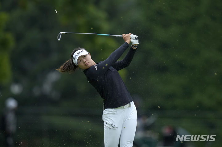 [스프링필드=AP/뉴시스] 고진영이 23일(현지시각) 미 뉴저지주 스프링필드의 발터스롤GC에서 열린 미국여자프로골프(LPGA) 투어 KPMG 위민스 PGA 챔피언십 2라운드 4번 홀에서 티샷하고 있다. 고진영은 중간 합계 1언더파 141타 공동 8위를 기록했다. 2023.06.24.