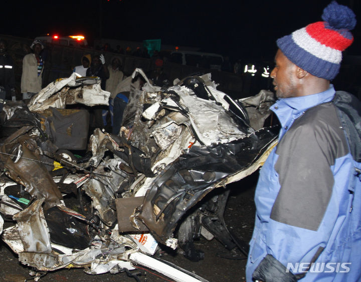 [나이로비=AP/뉴시스] 1일(현지시각) 케냐 나이로비 북서쪽 약 200㎞ 떨어진 론디아니 교차로 사고 현장에 잔해가 놓여 있다. 경찰은 전날 저녁 이 교차로에서 트럭 한 대가 다른 차량과 시장 상인들을 덮쳐 최소 55명이 숨지고 20여 명이 다쳤다고 밝혔다. 2023.07.01.