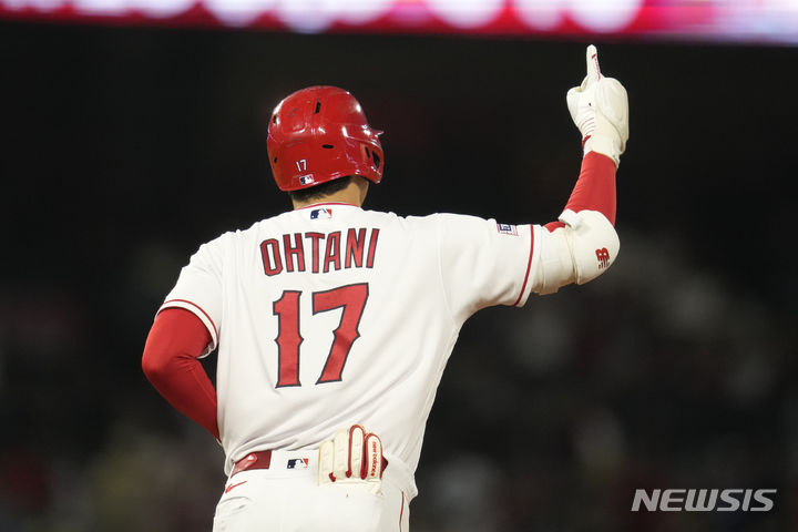[애너하임=AP/뉴시스] 로스앤젤레스 에인절스의 오타니 쇼헤이가 지난달 30일(현지시각) 미 캘리포니아주 애너하임의 에인절스타디움에서 열린 2023 메이저리그(MLB) 애리조나 다이아몬드백스와의 경기 6회 말 1점 홈런(시즌 30호)을 친 후 베이스를 돌고 있다. 오타니는 2타수 1안타(홈런) 1타점 2득점 2볼넷을 기록하며 3년 연속 30홈런 고지에 올랐다. 2023.07.01.
