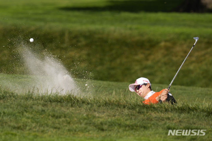 [페블비치=AP/뉴시스] 김효주가 8일(현지시각) 미 캘리포니아주 페블비치의 페블비치 골프 링크스에서 열린 미국여자프로골프(LPGA) 투어 US여자오픈 3라운드 17번 홀에서 벙커샷하고 있다. 김효주는 중간 합계 4언더파 212타 공동 3위를 기록했다. 2023.07.09.