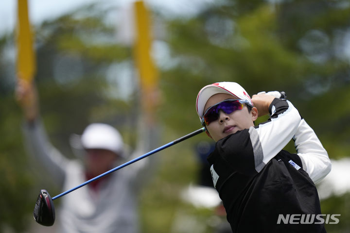 [페블비치=AP/뉴시스] 김효주가 9일(현지시각) 미 캘리포니아주 페블비치의 페블비치 골프 링크스에서 열린 미국여자프로골프(LPGA) 투어 US여자오픈 최종라운드 1번 홀에서 티샷하고 있다. 김효주는 최종 합계 2언더파 286타 공동 6위로 대회를 마쳤다. 2023.07.10.