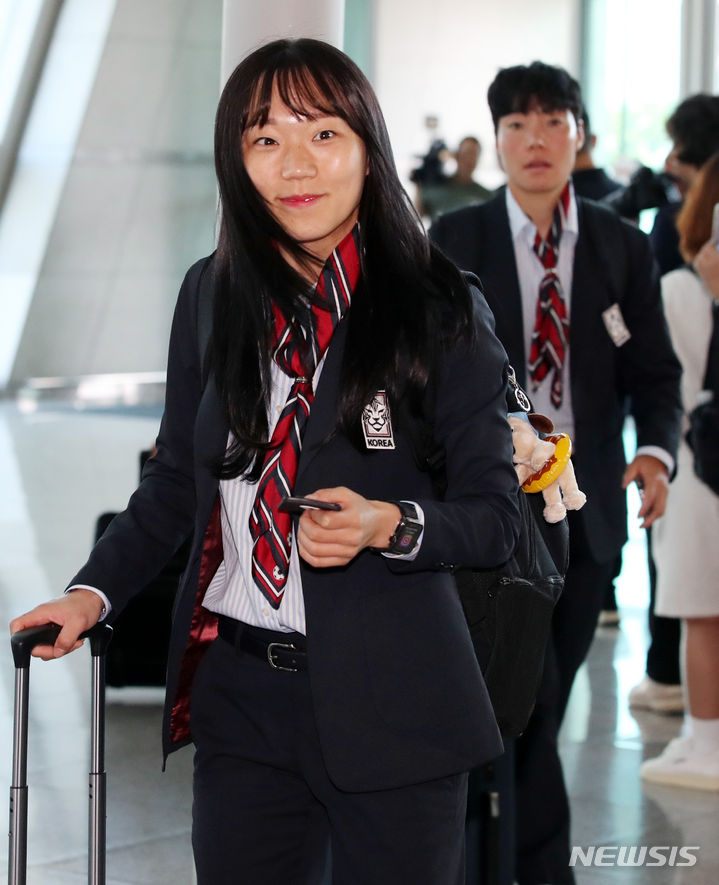 [인천공항=뉴시스] 김진아 기자 = 한국 여자축구대표팀 장슬기와 선수들이 2023 국제축구연맹(FIFA) 호주·뉴질랜드 여자월드컵에 출전하기 위해 10일 인천국제공항을 통해 출국하고 있다. 2023.07.10. [email protected]
