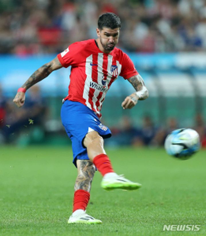 [서울=뉴시스] 최진석 기자 = 27일 서울 마포구 서울월드컵경기장에서 열린 쿠팡플레이시리즈 1차전 팀 K리그와 아틀레티코 마드리드의 경기. 아틀레티코 마드리드 로드리고 데폴이 슛을 날리고 있다. 2023.07.27. [email protected]