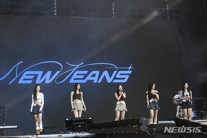 [시카고=AP/뉴시스] 그룹 뉴진스가 3일(현지시각) 미 일리노이주 시카고의 그랜트 파크에서 열린 롤라팔루자 뮤직페스티벌 첫날 헤드라이너(간판 출연)로 출격해 공연을 펼치고 있다. 2023.08.04.
