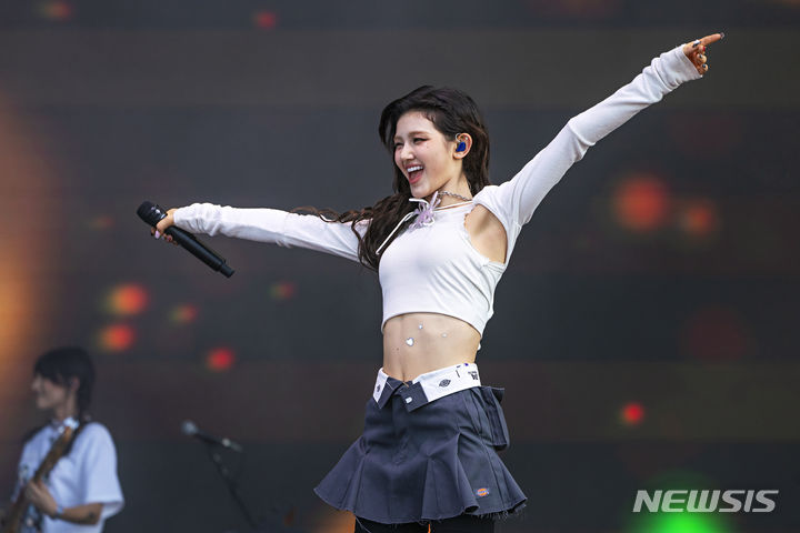 [시카고=AP/뉴시스] 그룹 뉴진스의 다니엘이 3일(현지시각) 미 일리노이주 시카고의 그랜트 파크에서 열린 롤라팔루자 뮤직페스티벌 첫날 헤드라이너(간판 출연)로 출격해 공연을 펼치고 있다. 2023.08.04.