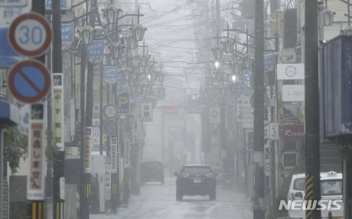 [다나베=AP/뉴시스] 15일 일본 서부 와카야마현 다나베시 거리에서 차들이 폭우 속을 지나고 있다. 제7호 태풍 '란'은 이날 오전 와카야마현 해안에 도달한 후, 오사카와 교토의 주요 지역을 지나 북쪽으로 향할 것으로 예상된다. 2023.08.15.