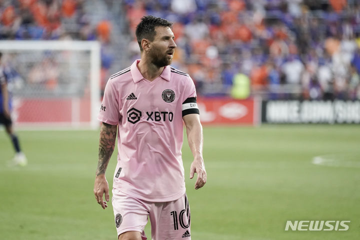 [신시내티=AP/뉴시스] 인터 마이애미의 리오넬 메시가 23일(현지시각) 미 오하이오주 신시내티의 TQL 스타디움에서 열린 미국프로축구 US오픈컵 신시내티FC와의 준결승 전반을 마치고 경기장을 내려오고 있다. 메시는 0-2로 뒤진 후반 23분과 52분 도움을 기록했다. 마이애미는 3-3 연장 끝 승부차기로 5-4로 승리하며 결승에 올랐다. 2023.08.24.