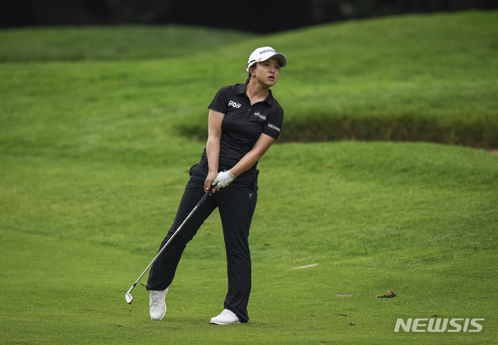 [밴쿠버=AP/뉴시스] 김세영이 25일(현지시각) 캐나다 브리티시컬럼비아주 밴쿠버의 쇼너시 골프 앤드 CC에서 열린 미국여자프로골프(LPGA) 투어 CPKC 위민스 오픈 2라운드 18번 홀에서 두 번째 샷 타구를 바라보고 있다. 김세영은 중간 합계 3언더파 141타 공동 6위를 기록했다. 2023.08.26.