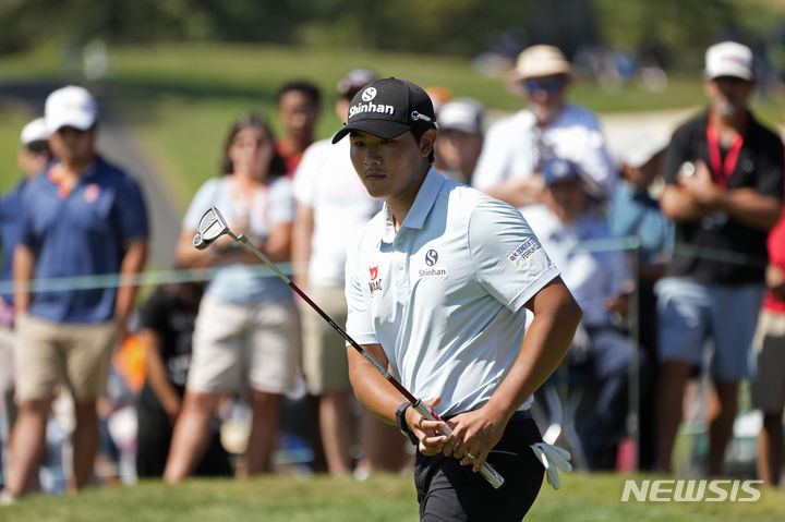 [나파=AP/뉴시스] 김성현이 17일(현지시각) 미 캘리포니아주 나파의 실버라도리조트&스파에서 열린 미국프로골프(PGA) 투어 포티넷 챔피언십 최종라운드 1번 그린에서 퍼팅하고 있다. 김성현은 최종 합계 19언더파 269타 단독 2위로 대회를 마쳤다. 2023.09.18.