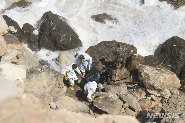 [데르나=AP/뉴시스] 18일(현지시각) 리비아 데르나에서 구조대가 홍수 희생자 시신을 찾고 있다. 유엔 인도주의 업무총괄국(OCHA)은 세계보건기구(WHO)의 증명된 수치를 인용하면서 리비아 홍수 사망자 수를 3958명이라고 대폭 하향 발표했다. 앞서 리비아 적신월(적십자)은 이번 홍수 사망자를 1만1300명이라고 발표했었다. 2023.09.19.