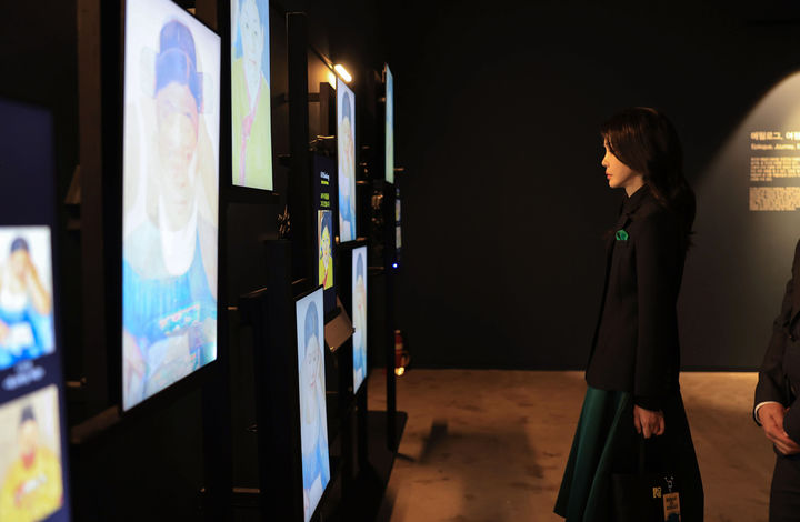 [광주=뉴시스] 윤석열 대통령 부인 김건희 여사가 10일 광주 동구 국립아시아문화전당을 찾아 AI 페인팅을 체험하고 있다. (사진=대통령실 제공) 2023.10.10. [email protected] *재판매 및 DB 금지