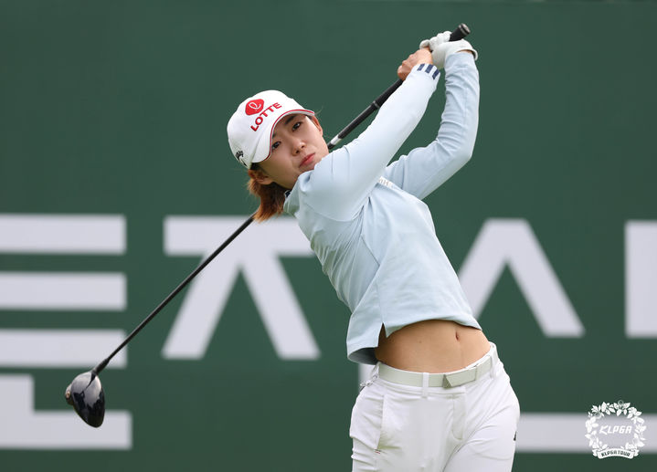 [서울=뉴시스] 13일 전북 익산CC에서 열린 동부건설 한국토지신탁 챔피언십 2라운드 10번홀에서 황유민이 티샷을 하고 있다. (사진=KLPGT 제공) 2023.10.13. [email protected] *재판매 및 DB 금지