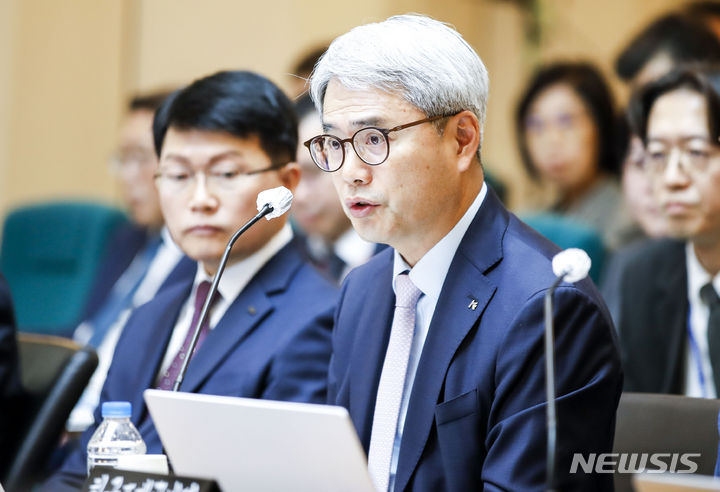 [서울=뉴시스] 정병혁 기자 = 윤희성 한국수출입은행장이 24일 서울 영등포구 한국수출입은행에서 열린 국회 기획재정위원회의 한국수출입은행 국정감사에서 양경숙 더불어민주당 의원의 질의에 답하고 있다. 2023.10.24. [email protected]