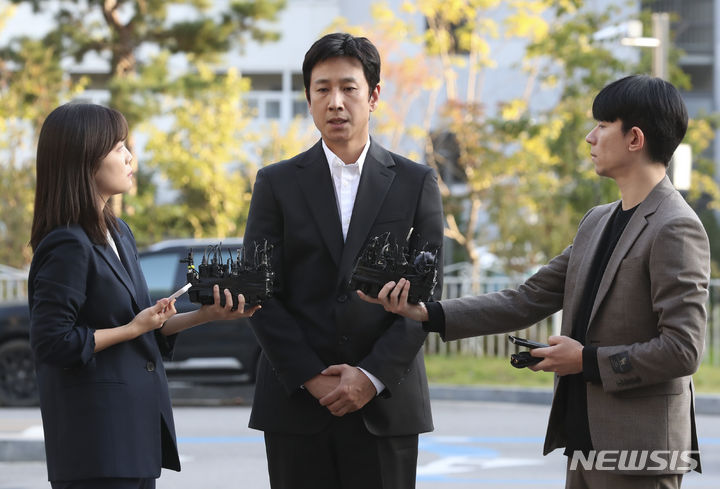 [인천=뉴시스] 김근수 기자 = 마약 투약혐의로 입건된 배우 이선균이 28일 인천 남동구 인천논현경찰서로 출석 전 취재진 질문에 답하고 있다. 2023.10.28. [email protected]