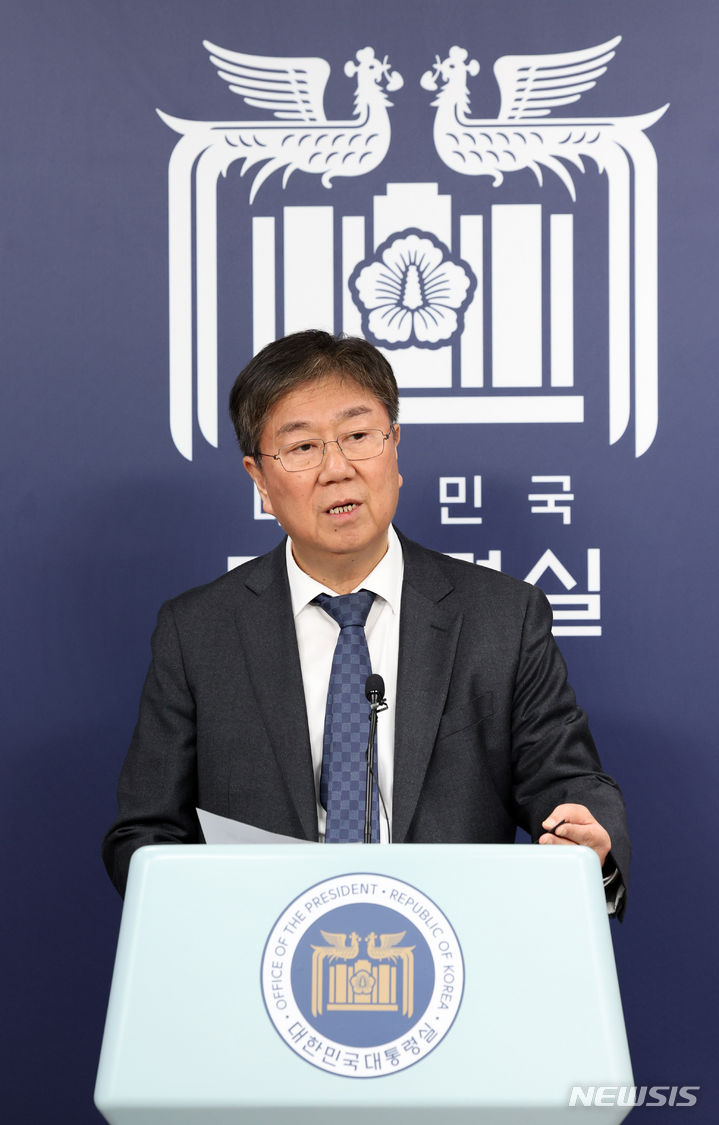 [서울=뉴시스] 조수정 기자 = 김대기 대통령 비서실장이 8일 서울 용산 대통령실 청사에서 윤석열 대통령이 대법원장 후보자에 조희대 전 대법관을 지명했다고 밝히고 있다. 2023.11.08. [email protected]