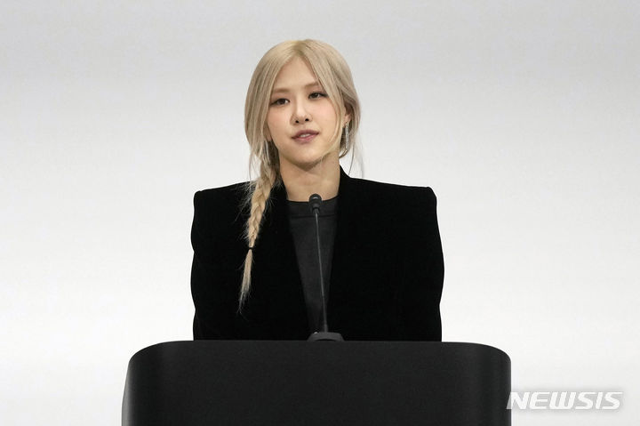 [쿠퍼티노=AP/뉴시스] 걸그룹 블랙핑크의 로제가 17일(현지시각) 미 캘리포니아주 쿠퍼티노의 애플 본사에서 아시아태평양경제협력체(APEC) 정상회의 참석 정상 배우자들을 대상으로 열린 정신 건강 행사에 참석해 발언하고 있다. 로제는 정신적으로 힘들었던 자기 경험을 공유하며 정신 건강의 중요성을 이야기했다. 2023.11.18.