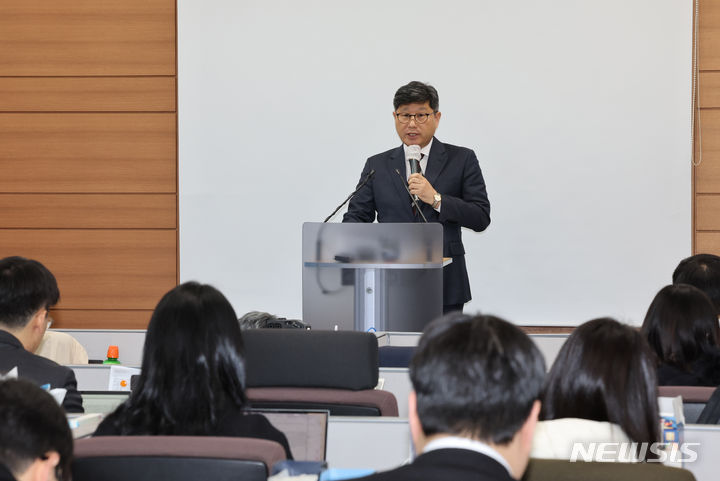 [서울=뉴시스] 김금보 기자 = 윤웅장 법무부 범죄예방국장이 20일 오전 서울 서초구 서울고등검찰청 기자실에서 '전자감독 피해자 보호 시스템' 강화에 대해 설명하고 있다. '스토커 위치정보 피해자 알림'을 골자로 하는 이번 강화 시스템은 스토킹 행위자 접근 시 위치정보를 피해자에게 제공하는 시스템으로, 오는 24년 1월 12일 스토킹범죄의 처벌 등에 관한 법률 개정안 시행에 맞추어 현장에 적용 된다. 2023.11.20. [email protected]