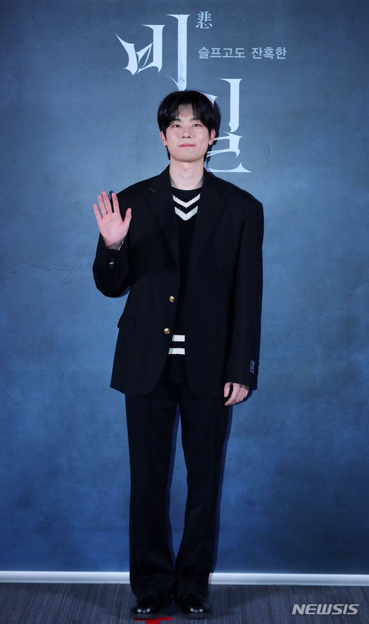 [서울=뉴시스] 김혜진 기자 = 배우 최찬호가 21일 오후 서울 성동구 메가박스 성수에서 열린 영화 '비밀' 언론시사회에서 포즈를 취하고 있다. '비밀'은 잔혹하게 살해된 사체에서 10년 전 자살한 영훈의 일기가 발견되고, 그 이면을 파헤치던 강력반 형사 동근이 잊고 있던 자신의 과거와 마주하는 추적 스릴러. 오는 12월 8일 개봉. 2023.11.21. [email protected]