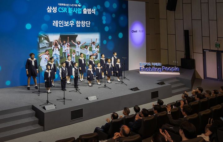 [서울=뉴시스] 22일 서울 송파구 래미안갤러리에서 열린 삼성 사회적 약자 지원 CSR 신사업 출범식에서 레인보우합창단이 축하공연을 하고 있다. (사진=삼성전자 제공) 2023.11.22. [email protected] *재판매 및 DB 금지