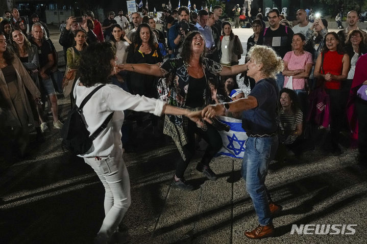인질 석방 소식에 춤추는 이스라엘 사람들