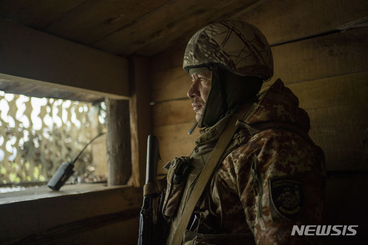 [수미=AP/뉴시스] 24일(현지시각) 우크라이나 동북부 수미에서 우크라이나 국경경비대원이 러시아군 감시 초소에서 근무하고 있다. 러시아군이 지난해 봄 수미에서 철수했지만, 러시아와 인접한 수미주는 여전히 공격받을 위험을 안고 있다. 2023.11.25.