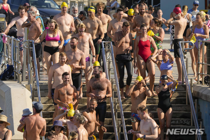 [시드니=AP/뉴시스] 9일(현지시각) 호주 전역에 40도가 넘는 무더위가 이어지면서 시드니 본다이 비치에 피서객들이 몰려들고 있다. 호주 재난 당국은 호주 전역에 폭염 경보를, 사우스오스트레일리아주, 빅토리아주 일부 등지에 화재 경보를 발령했다. 2023.12.09.