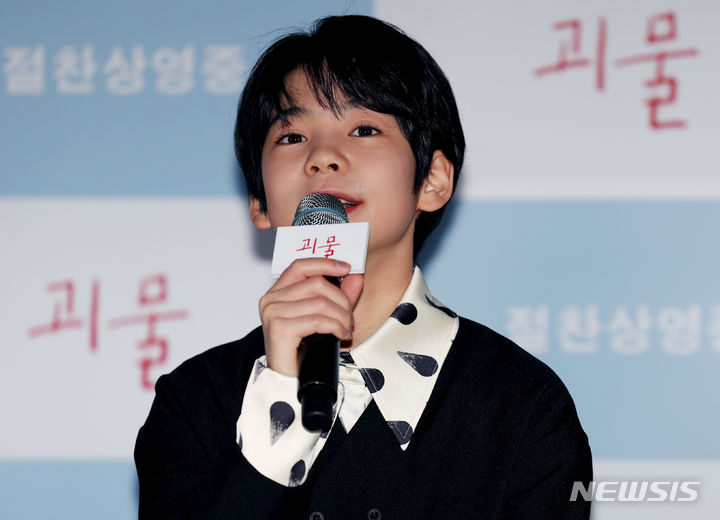 [서울=뉴시스] 김진아 기자 = 배우 히이라기 히나타가 21일 오전 서울 용산구 CGV용산아이파크몰에서 열린 영화 '괴물' 내한 기자간담회에서 취재진의 질문에 답하고 있다. 2023.12.21. [email protected]