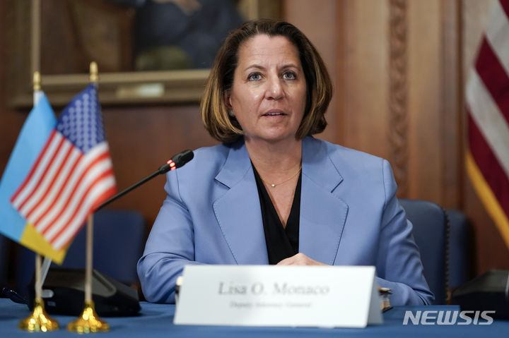 미국 법무부에서 발언하는 리사 모나코 법무차관