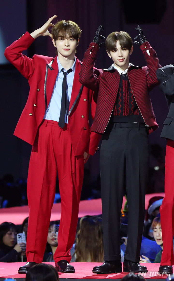 [인천=뉴시스] 김혜진 기자 = 그룹 라이즈 성찬, 쇼타로가 25일 오후 인천 중구 인스파이어 아레나에서 열린 '2023 SBS 가요대전' 시상식에서 포즈를 취하고 있다. 샤이니 키, 투모로우바이투게더 연준, 아이브 안유진이 MC를 맡은 '2023 SBS 가요대전'은 동방신기, 샤이니, NCT 127, NCT 드림, 더보이즈, 프로미스나인, 스트레이 키즈, (여자)아이들, 에이티즈, 있지, 투모로우바이투게더, 크래비티, 스테이씨, 에스파, 엔하이픈, 아이브, 엔믹스, 르세라핌, 뉴진스, 싸이커스, 보이넥스트도어, 제로베이스원, 라이즈, 니쥬, 앤팀까지 총 25팀이 출연한다. 2023.12.25. [email protected]