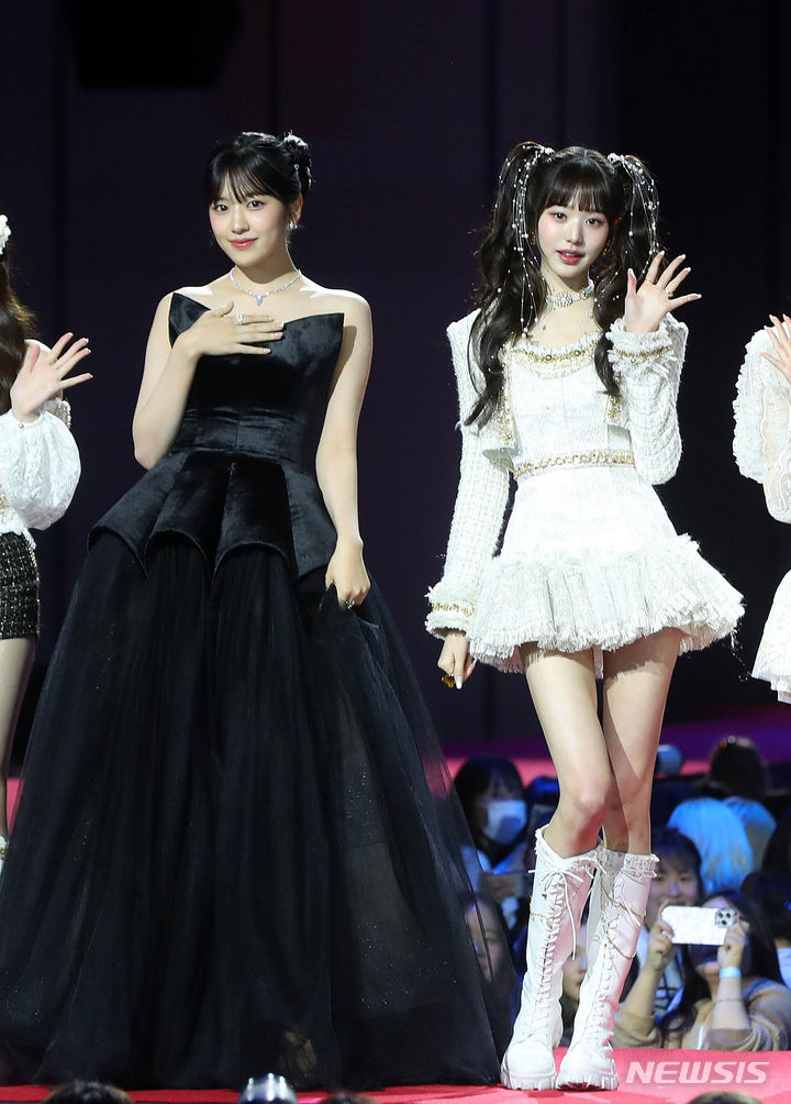 [인천=뉴시스] 김혜진 기자 = 그룹 아이브 유진, 원영이 25일 오후 인천 중구 인스파이어 아레나에서 열린 '2023 SBS 가요대전' 시상식에서 포즈를 취하고 있다. 샤이니 키, 투모로우바이투게더 연준, 아이브 안유진이 MC를 맡은 '2023 SBS 가요대전'은 동방신기, 샤이니, NCT 127, NCT 드림, 더보이즈, 프로미스나인, 스트레이 키즈, (여자)아이들, 에이티즈, 있지, 투모로우바이투게더, 크래비티, 스테이씨, 에스파, 엔하이픈, 아이브, 엔믹스, 르세라핌, 뉴진스, 싸이커스, 보이넥스트도어, 제로베이스원, 라이즈, 니쥬, 앤팀까지 총 25팀이 출연한다. 2023.12.25. [email protected]