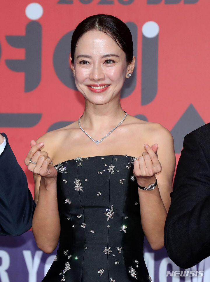 [서울=뉴시스] 김혜진 기자 = 방송인 송지효가 30일 오후 서울 마포구 상암동 프리즘타워에서 열린 2023 SBS 연예대상 시상식에서 포즈를 취하고 있다. 2023.12.30. [email protected]