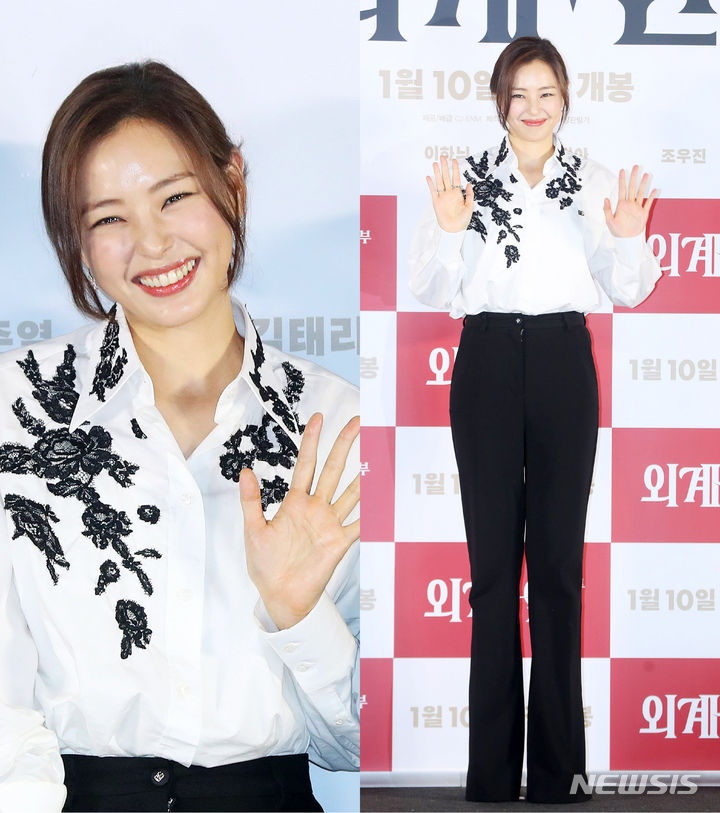 [서울=뉴시스] 김혜진 기자 = 배우 이하늬가 3일 오후 서울 용산구 CGV 용산아이파크몰에서 열린 영화 '외계+인' 2부(감독 최동훈) 언론시사회에서 포즈를 취하고 있다. 2024.01.03. [email protected]