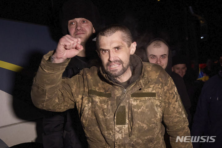 [수미=AP/뉴시스] 3일(현지시각) 우크라이나 수미 인근에서 포로 교환을 마친 한 우크라이나 전쟁포로가 울먹이며 기뻐하고 있다. 러시아와 우크라이나는 아랍에미리트(UAE)의 중재로 개전 이래 최대 규모의 포로를 교환했다. 이에 따라 러시아 포로 248명, 우크라이나 포로 230명이 석방됐다. 2024.01.05.