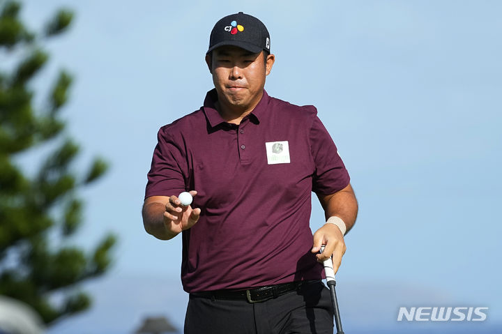 [카팔루아=AP/뉴시스] 안병훈이 6일(현지시각) 미 하와이주 카팔루아의 플랜테이션 코스에서 열린 미국프로골프(PGA) 투어 더 센트리 3라운드 2번 홀을 버디로 마치고 갤러리에 화답하고 있다. 안병훈은 중간 합계 19언더파 200타를 치며 공동 3위로 도약했다. 2024.01.07.