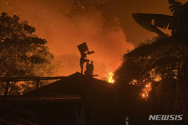 화염에 휩싸인 방글라데시 로힝야족 난민 캠프