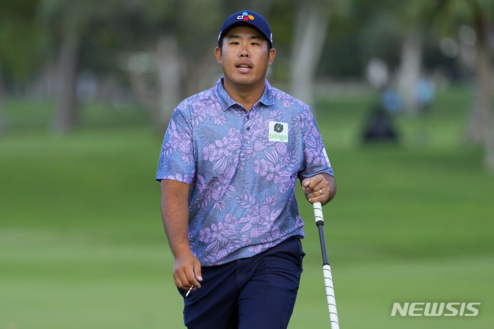 [호놀룰루=AP/뉴시스] 안병훈이 12일(현지시각) 미 하와이주 호놀룰루의 와이알레이 CC에서 열린 미국프로골프(PGA) 투어 소니 오픈 2라운드 18번 페어웨이에서 라운딩하고 있다. 첫날 공동 16위였던 안병훈은 중간 합계 9언더파 131타 공동 선두로 올라섰다. 2024.01.13.