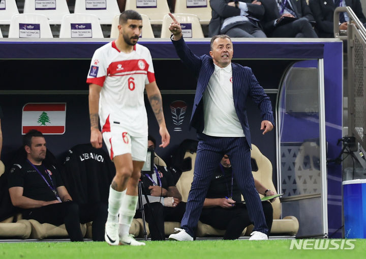 [도하(카타르)=뉴시스] 김근수 기자 = 12일(현지시각) 카타르 도하 루사일 스타디움에서 열린 AFC 카타르 아시안컵 2023 개막전 카타르 대 레바논의 경기에서 레바논 미오드라그 아둘로비치 감독이 전술지시를 하고 있다. 2024.01.13. [email protected]