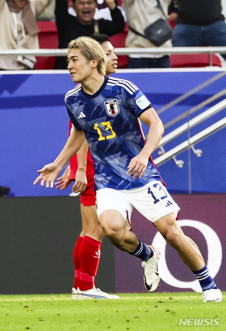 [도하(카타르)=뉴시스] 김근수 기자 = 14일(현지시간) 카타르 도하 알수마마 스타디움에서 열린 AFC 카타르 아시안컵 2023 조별리그 D조 1차전 일본 대 베트남의 경기, 전반 나카무라가 득점을 하고 기뻐하고 있다. 2024.01.14. [email protected]