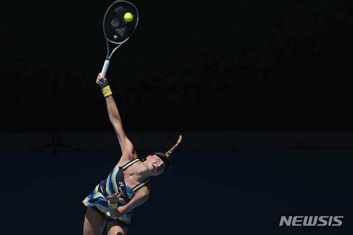 [멜버른=AP/뉴시스] 다야나 야스트렘스카(93·우크라이나)가 24일(현지시각) 호주 멜버른에서 열린 호주오픈 여자 단식 8강전에서 린다 노스코바(50위·체코)와 경기하고 있다. 야스트렘스카는 노스코바를 2-0(6-3 6-4)으로 물리치고 생애 첫 그랜드슬램 4강에 올랐다. 2024.01.24.