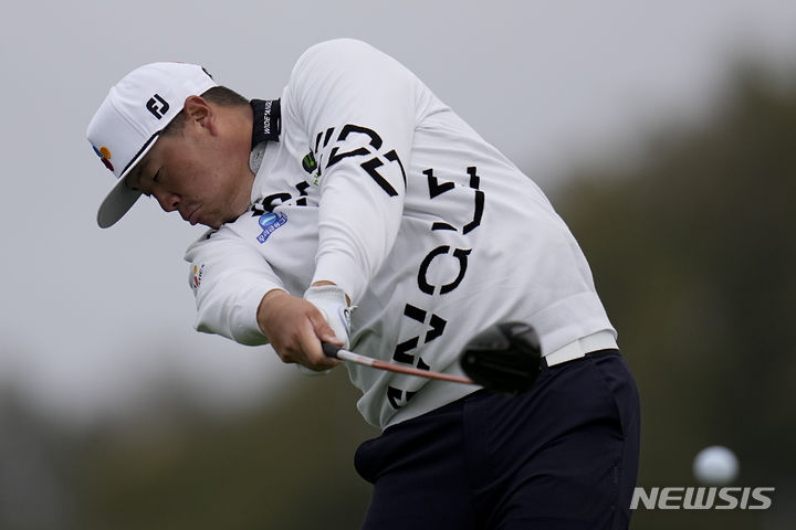 [샌디에이고=AP/뉴시스] 임성재가 24일(현지시각) 미 캘리포니아주 샌디에이고의 토리파인스GC 사우스코스에서 열린 미국프로골프(PGA) 투어 파머스 인슈어런스 오픈 첫날 2번 홀에서 티샷하고 있다. 임성재는 1오버파 73타 공동 108위에 이름을 적었다. 2024.01.25.