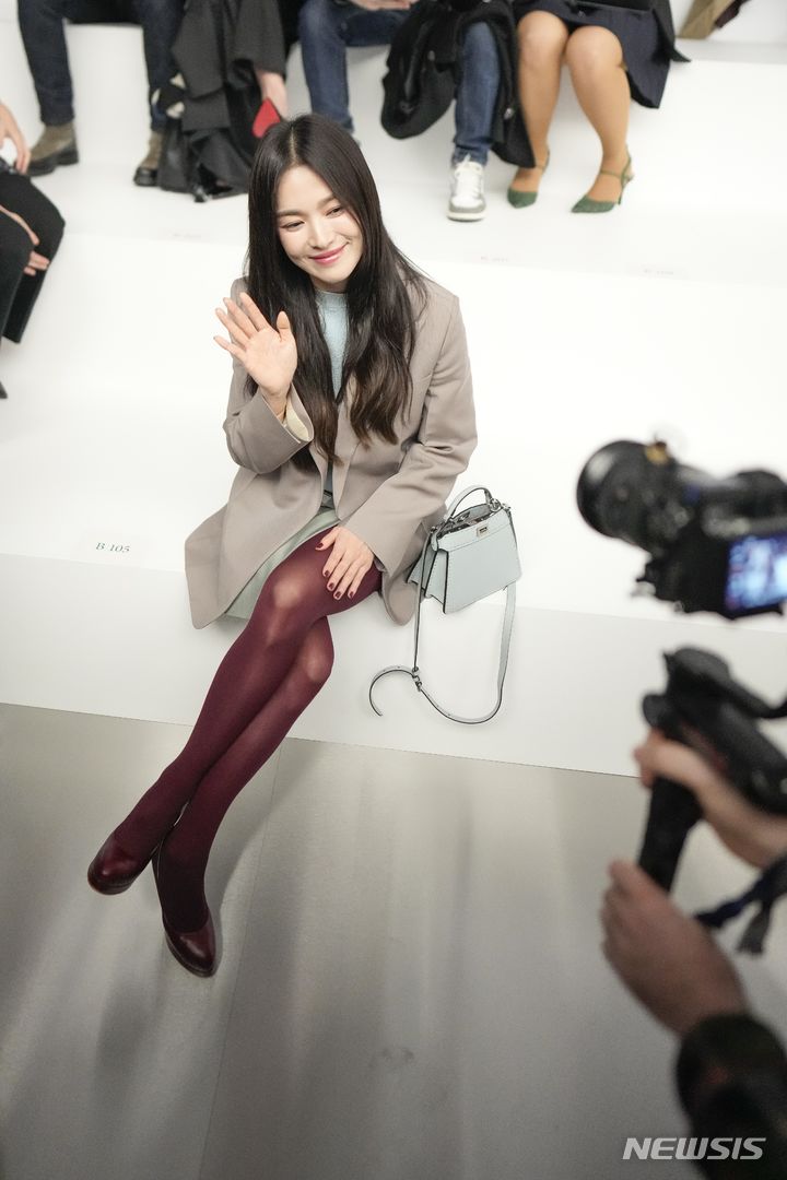 [파리=AP/뉴시스] 배우 송혜교가 25일(현지시각) 프랑스 파리에서 열린 펜디 오트 쿠튀르 춘·하 컬렉션에 참석해 포즈를 취하고 있다. 송혜교는 글로벌 패션하우스 '펜디'의 홍보대사로 활동하고 있다. 2024.01.26.