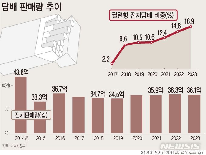 [그래픽] 작년 담배 판매량 감소…전자담배는 12.6% 증가