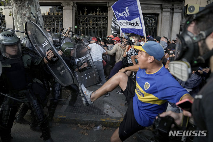 경찰과 충돌한 아르헨티나 반정부 시위대