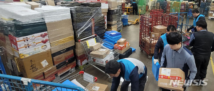 설 택배 나르며 분주하게 움직이는 전주우체국 직원들