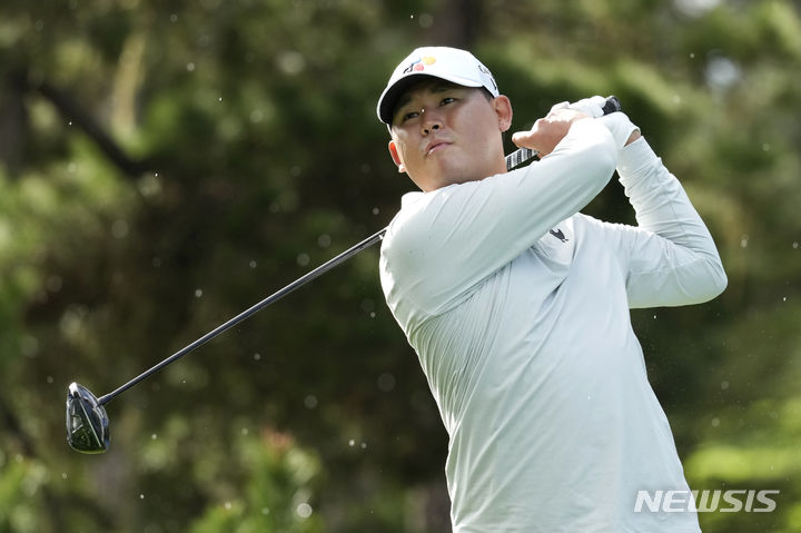 [페블비치=AP/뉴시스] 김시우가 2일(현지시각) 미 캘리포니아주 페블비치에서 열린 미국프로골프(PGA) 투어 AT&T 페블비치 프로암 2라운드 7번 홀에서 티샷하고 있다. 첫날 공동 4위였던 김시우는 중간 합계 7언더파 137타 공동 10위를 기록했다. 2024.02.03.