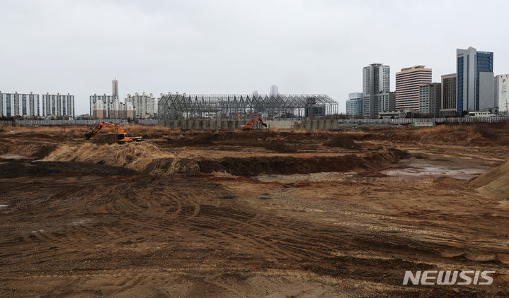 [서울=뉴시스] 홍효식 기자 = 서울시가 5일 용산에 100층 랜드마크 국제업무지구를 건설하는 '용산국제업무지구 개발계획(안)'을 발표했다. 사진은 용산국제업무지구가 들어설 서울 용산정비창 부지. (공동취재) 2024.02.05. [email protected]