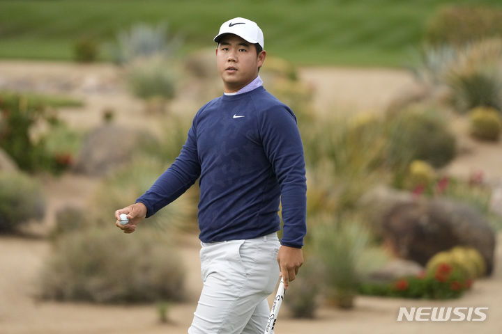 [스코츠데일=AP/뉴시스] 김주형이 8일(현지시각) 미 애리조나주 스코츠데일의 TPC 스코츠데일에서 열린 미국프로골프(PGA) 투어 WM 피닉스 오픈 첫날 16번 홀을 파로 마친 후 내려오고 있다. 티샷하고 있다. 김주형은 3오버파 74타로 1라운드를 마쳤다. 2024.02.09.