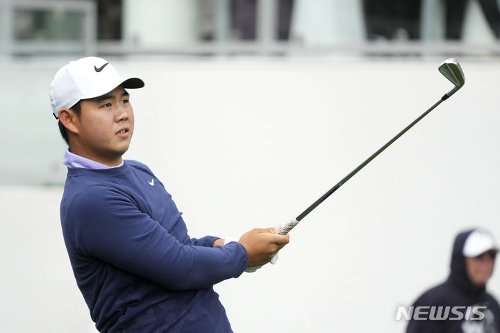 [스코츠데일=AP/뉴시스] 김주형이 8일(현지시각) 미 애리조나주 스코츠데일의 TPC 스코츠데일에서 열린 미국프로골프(PGA) 투어 WM 피닉스 오픈 첫날 16번 홀에서 티샷하고 있다. 김주형은 3오버파 74타로 1라운드를 마쳤다. 2024.02.09.